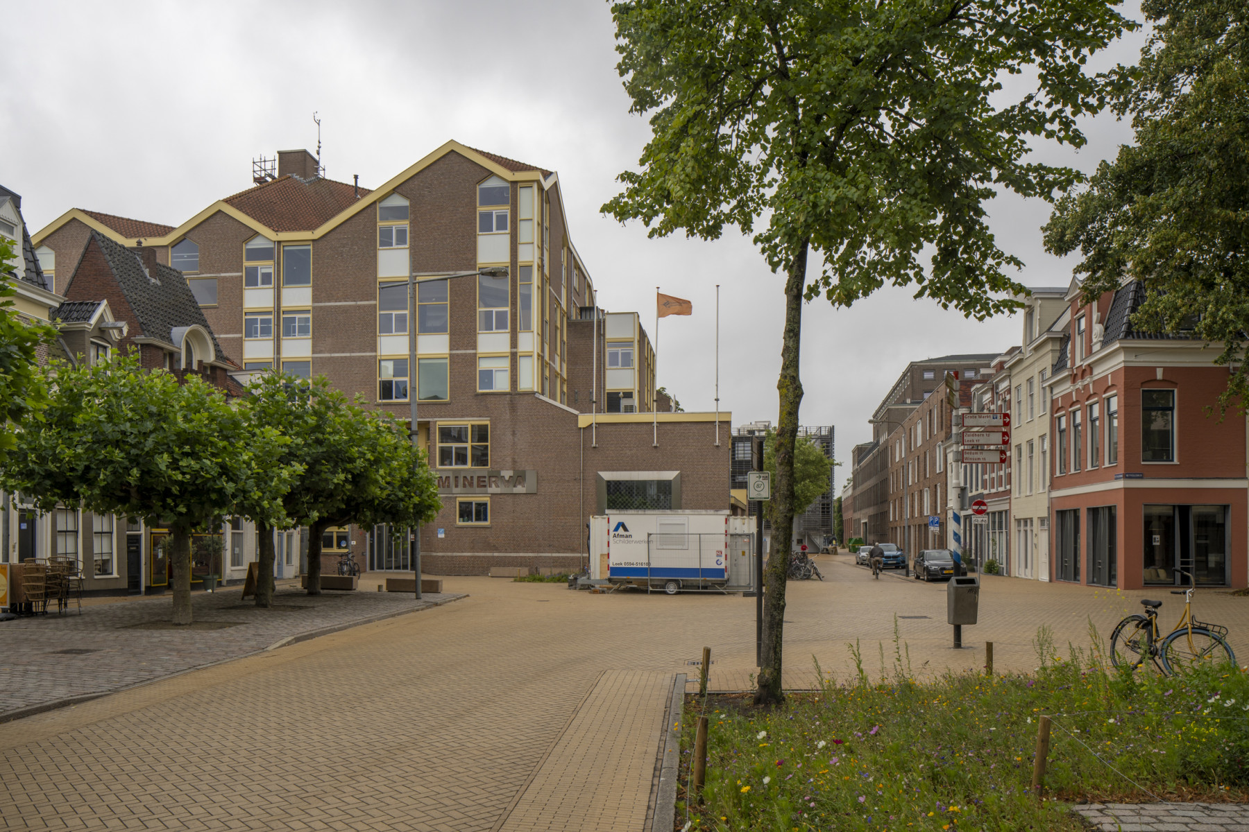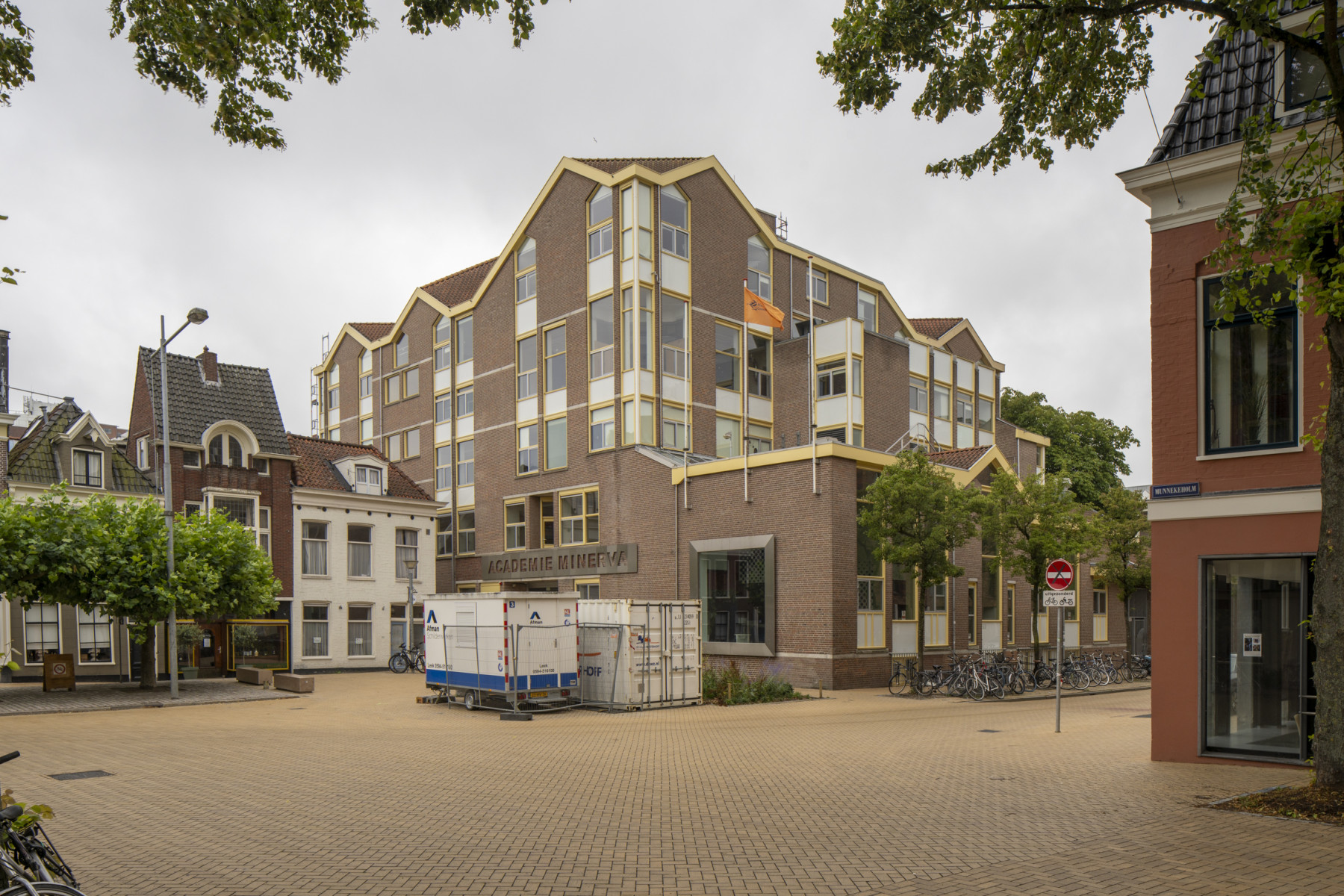Kunstacademie Minerva werd in 1984 gebouwd op een perceel van 4000m2 op de westelijke kop van het Gedempte Zuiderdiep. Temidden van de bestaande stedelijke bebouwing was een lege plek, waar een gebouw van maar liefst 10.000 vierkante meter moest verrijzen. Voor het ontwerp werd Piet Blom (1934-1999) benaderd. Blom was nauw verbonden aan het structuralisme; een architectuurstroming waarin de menselijke maat, collectiviteit en ‘zachte’ overgangen tussen het privé en openbare domein een belangrijke rol speelden.