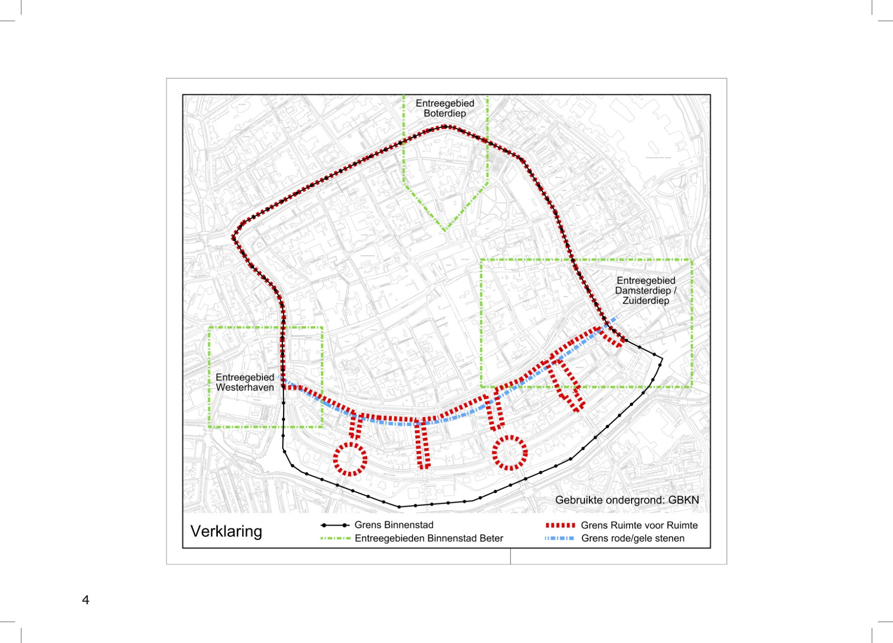 Om een samenhangend beeld van de binnenstad te geven werd gekozen voor eenduidige bestrating. Het netwerk van de binnenstad (beheerste stad) werd met meer dan drie miljoen zandgele klinkers bestraat, met accenten van oude, glimmende granietkeien en blauwe gesinterde scoria bricks (oud gebakken stenen). Beeldbepalende plekken zoals de Grote Markt, de Vismarkt, de Diepenring en de singels (karakteristieke stad) kregen een extra accent in bijvoorbeeld de patronen van de bestrating. Een aantal levendige plekken, zoals het Academieplein, het Poelestraatplein en het Hereplein kreeg een meer uitbundige vormgeving (expressieve stad). En ten slotte waren er de verborgen delen van de binnenstad, zoals de hofjes, tuinen en pleintjes die beschermd en beheerd moesten worden (verscholen stad).