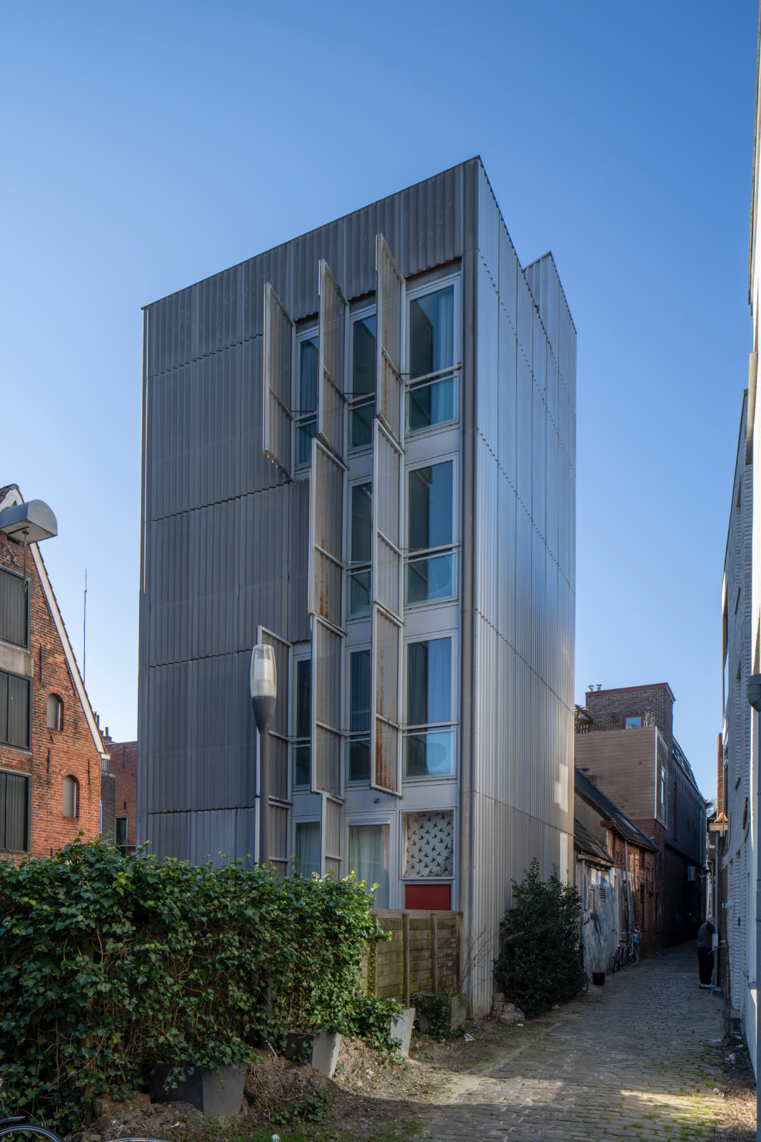 De conceptuele inzet van FOA, om een gevel te maken die net als een slaapzak, naar believen open en dichtgeritst kon worden, werd uiteindelijk vertaald in een volume met stalen skelet en een huid van geperforeerde staalplaat. Het ontwerp valt op door zijn eenvoud. Het is een symmetrisch blok van vier verdiepingen dat rondom is bekleed met stalen golfplaten. Deze stalen panelen kunnen worden geopend. Hierdoor kan het gebouw veranderen van een gesloten en massieve zuil in een open en licht bouwwerk.