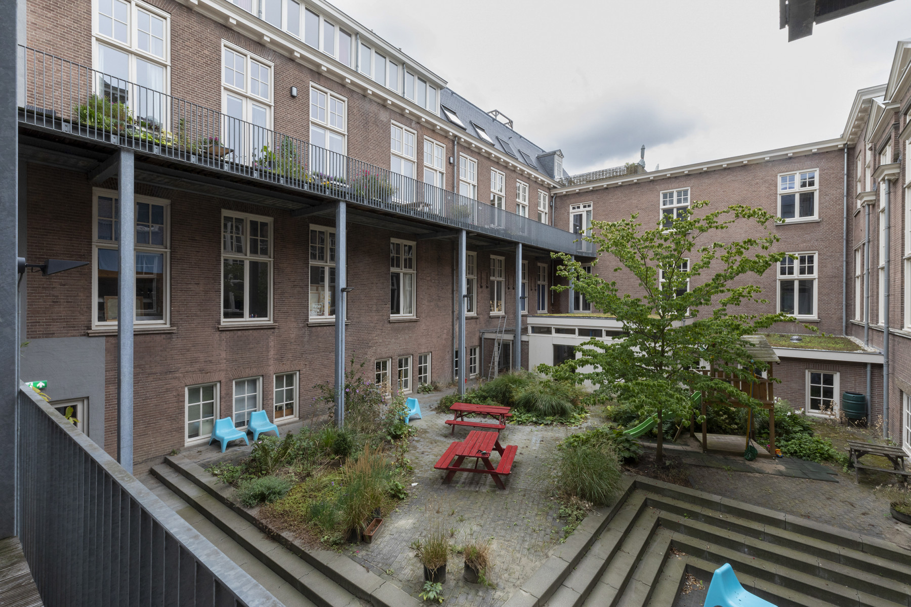 De tweede, oostelijk gelegen binnenplaats heeft een meer besloten karakter en dient als binnentuin voor bewoners en kunstenaars. De historische elementen in het gebouw en de buitengevels zijn zoveel mogelijk gehandhaafd en nieuwe toevoegingen zijn duidelijk als zodanig herkenbaar gemaakt. Het meest markante punt is de nieuwe onderdoorgang van de Bloemsingel naar de westelijke binnenplaats. Ook de inwendige hoofdstructuur is, zelfs na de verbouwing, deels nog goed herkenbaar. De paneeldeuren in geprofileerde omlijstingen en de vensters met geaccentueerde vensterbanken en raamhout zijn behouden. Ook de kap, die verbouwd is tot studio’s en slaapkamers van de onderliggende woningen, bezit nog de originele houten kapconstructie.