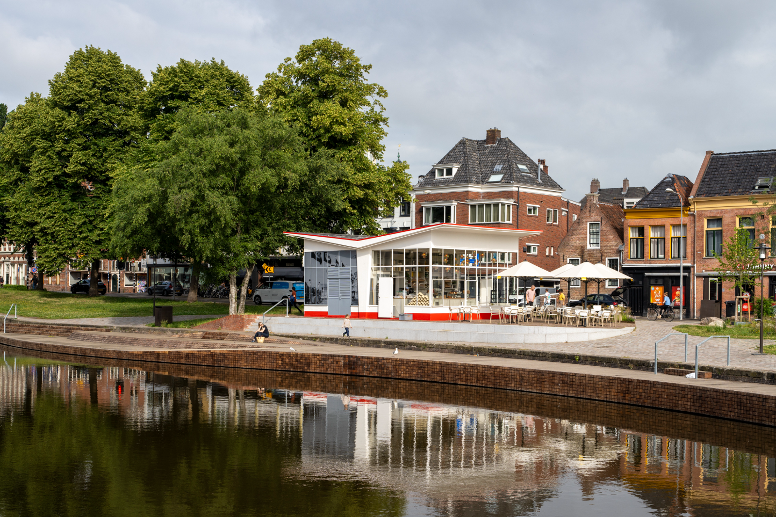 Van de benzinestations van Dudok resteren er nog twee, waarvan alleen die in Groningen nog op z’n oorspronkelijke plek staat en het langst dienst heeft gedaan als tankstation. Het paviljoen bestaat uit een betonskelet van twee in een V-vorm geplaatste lessenaarsdaken, op taps toelopende staanders. Daaronder zitten transparante en semi-transparante glazen volumes met stalen puien. In Groningen wordt het station gecombineerd met een transformatorstation waardoor de westzijde een gesloten karakter heeft. Onder de naam ‘Dudok aan het Diep’ is het paviljoen in 2024 door IRIS Architecten opgeknapt en onderdeel geworden van een compact plantsoen met een aangrenzende vlonder, naar ontwerp van Marseille Buiten.