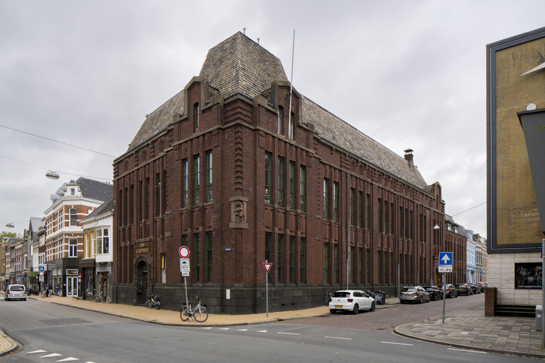 Van Elmpt gaf ook de opdracht tot de vervaardiging van de drie beeldhouwwerken. De verspringende vlakken en het trapsgewijs verlopende metselwerk worden door de beelden van Willem Valk nog eens geaccentueerd. Opmerkelijk is de in rode zandsteen gehouwen beer op de hoek. Mogelijk is dit een verwijzing naar het feit dat het dier volgens de overlevering altijd doende is honing te vergaren om zo, op zijn manier, rijkdom te verzamelen. De hoofdingang en de gevel aan de zijde van de Herestraat zijn versierd met abstracte decoraties. Mercurius, de Romeinse god van de handel, markeert de zijingang.