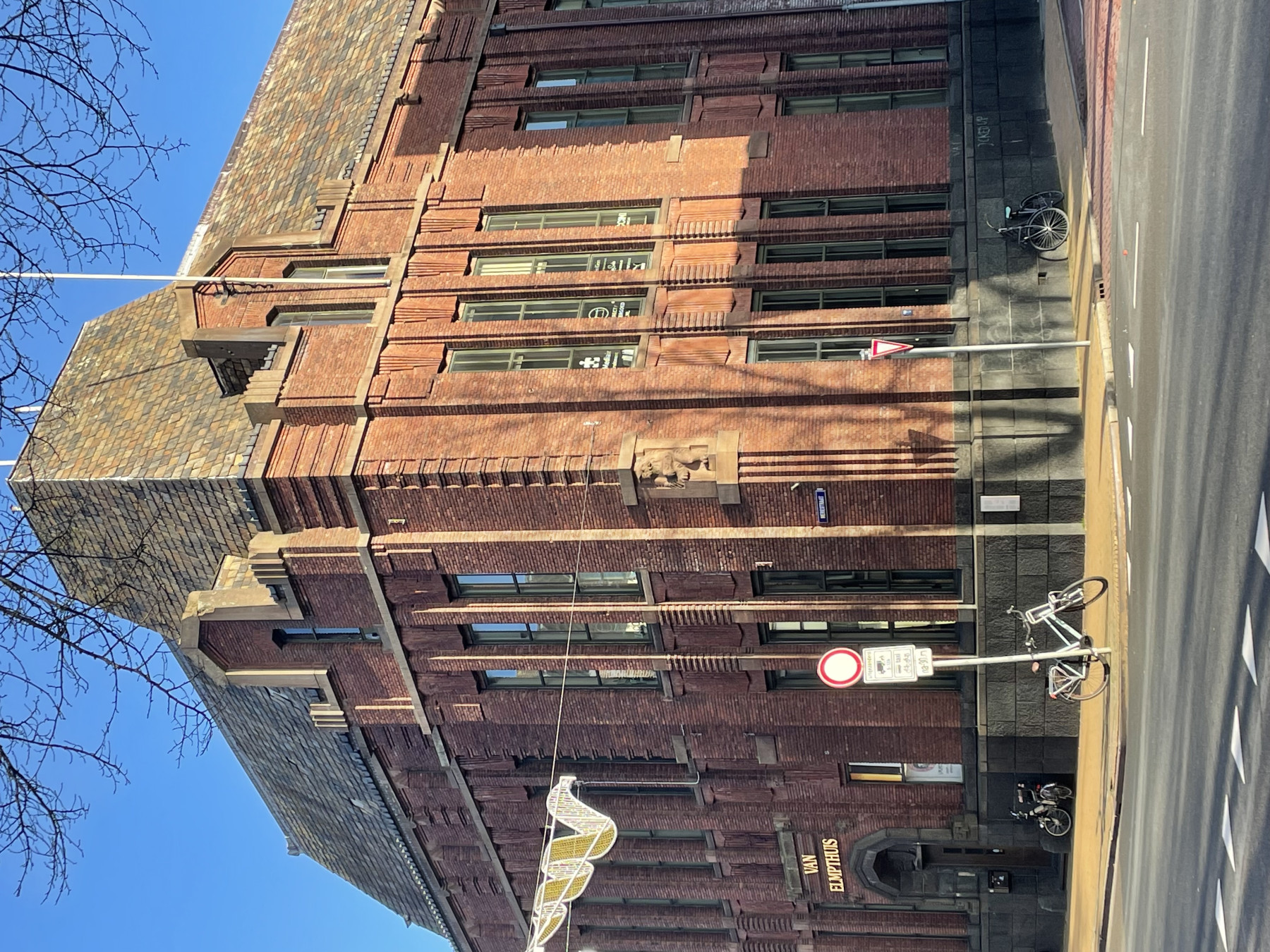 In opdracht van de Friesch-Groningsche Hypotheekbank ontwierp de Groninger architect A.Th. van Elmpt een bankgebouw in Art-Deco stijl dat in 1928 op de hoek van de Herestraat en de Herebinnesingel werd gerealiseerd. Het pand is rijk gedecoreerd; de diverse metselverbanden van donkerbruine baksteen doen recht aan de kenmerkende geometrische motieven van Art Deco.