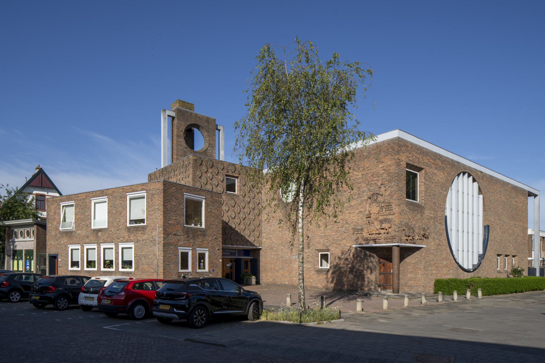 Het gebouw bestaat uit drie volumes die aan elkaar zijn gekoppeld. Het rechthoekige hoofdvolume met de kerkzaal ligt evenwijdig aan de Heinsiusstraat. Het volume links hiervan met portaal is een stuk teruggelegd zodat een voorplein is ontstaan. Dit deel bevat een uitstekende, gemetselde klokkenstoel. Links hiervan bevindt zich een aangebouwd volume op een wigvormige plattegrond van twee bouwlagen met plat dak met consistoriekamer en bovengelegen kosterswoning.