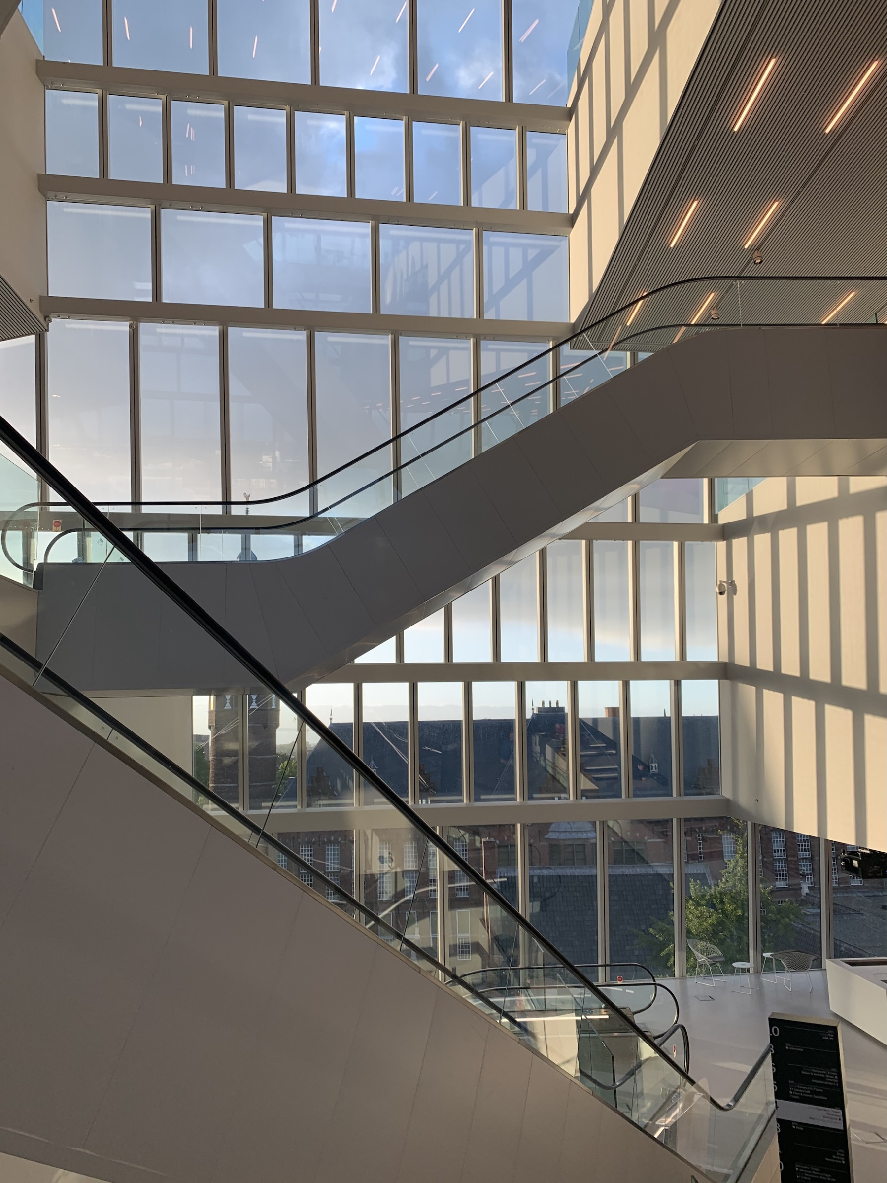 Het Forum wordt gekenmerkt door een bijzondere centrale ruimte, een atrium dat met zijn horizontale 'tentakels' het kloppend hart vormt van het gebouw. De vide is een ruimtelijke interface die alle voorzieningen in het gebouw aaneensmeedt en de uitwisseling van kennis en ideeën hoopt te katalyseren.