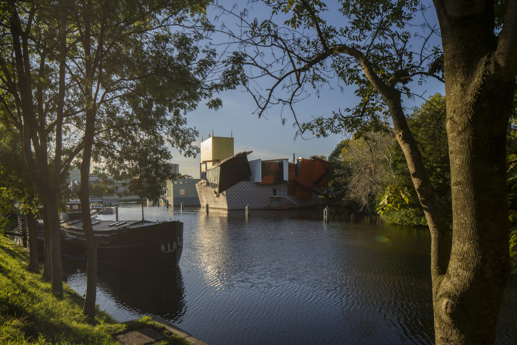 Centraal op het museumeiland staat een gouden toren waarin de ‘kunstschatten’ liggen opgeslagen. Onder dit depot is de ingang gesitueerd. Ten westen van de toren liggen twee paviljoens op elkaar. Het onderste, naar ontwerp van Michele de Lucchi, was bestemd voor de presentatie van de geschiedenis van stad en provincie Groningen. Vandaar ook de bekleding met de typisch Groninger rode baksteen. Tegenwoordig worden in dit paviljoen de werken van de Groninger kunstenaarsgroep De Ploeg getoond. Boven op het bakstenen deel ligt een schijfvormig paviljoen van de internationaal vermaarde ontwerper Philippe Starck. Hier bevinden zich de voorwerpen op het gebied van kunstnijverheid. De aluminium schil aan de buitenkant is versierd met het reliëf van een vaas.