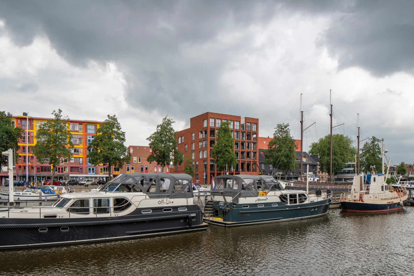 Op allerlei verkommerde plekken in dit gebied lagen kansen tot verdichting en verbetering. Een groepje eenvoudige, vervallen woningen aan de kade, op de hoek van de Oosterhavenstraat, leverden het bewijs. Na sloop van de bestaande bebouwing werd hier een zes verdiepingen hoog ‘Harbour house’ gerealiseerd.