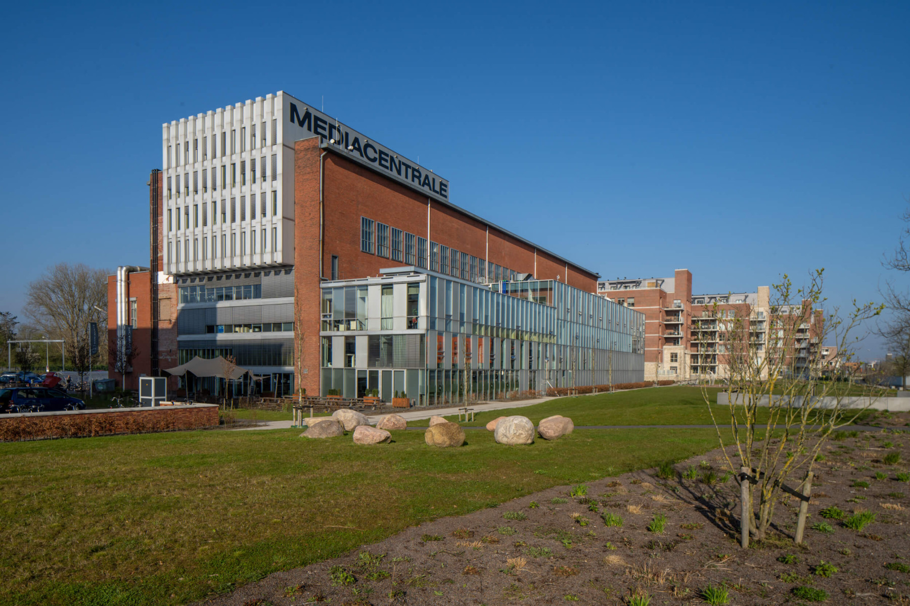 Toch werd de herbestemming uiteindelijk niet gevonden in een tentoonstellingsruimte of museum, maar in de vorm van een mediagebouw: de Mediacentrale, een verzamelgebouw voor mediagerelateerde bedrijven. RTV Noord is met zijn radio- en tv-activiteiten dan ook een van de belangrijkste gebruikers. Architectenbureau De Zwarte Hond tekende voor het ontwerp van de herbestemming. Het open karakter van het middenschip met zijn enorme ruimtelijkheid bleef gehand- haafd, maar het meest efficiënt zijn de zijbeuken benut: circa 10.000 m2 vloeroppervlak voor kantoor- en bedrijfsruimte (daarvan heeft RTV Noord veertig procent in gebruik). Dit was mogelijk omdat de bestaande constructie voldoende reserves had om belast te worden met twee tot drie extra vloeren. Er zijn wel grote ingrepen aan de noordoost gevel gepleegd. Deze grof gemetselde gevel vormde oorspronkelijk de scheiding tussen de turbinehal en het ketelhuis en had nauwelijks openingen. Deze is gesloopt totdat de staalconstructie overbleef en er is een nieuwe glazen gevel voor in de plaats gekomen. De toegevoegde materialen aan het gebouw zijn aangepast aan het al aanwezige materiaal en zijn terughoudend van karakter. Ook de oorspronkelijke industriële grijsgroene kleur van de bestaande constructieonderdelen is op de nieuwe toevoegingen aangebracht. In het nieuwe ontwerp is aan het einde van de hal een ‘machine’ toegevoegd die van binnen en buiten zichtbaar is. Hiermee is een nieuw beeldmerk aangebracht dat uitdrukking geeft aan de veranderde functie van het gebouw.