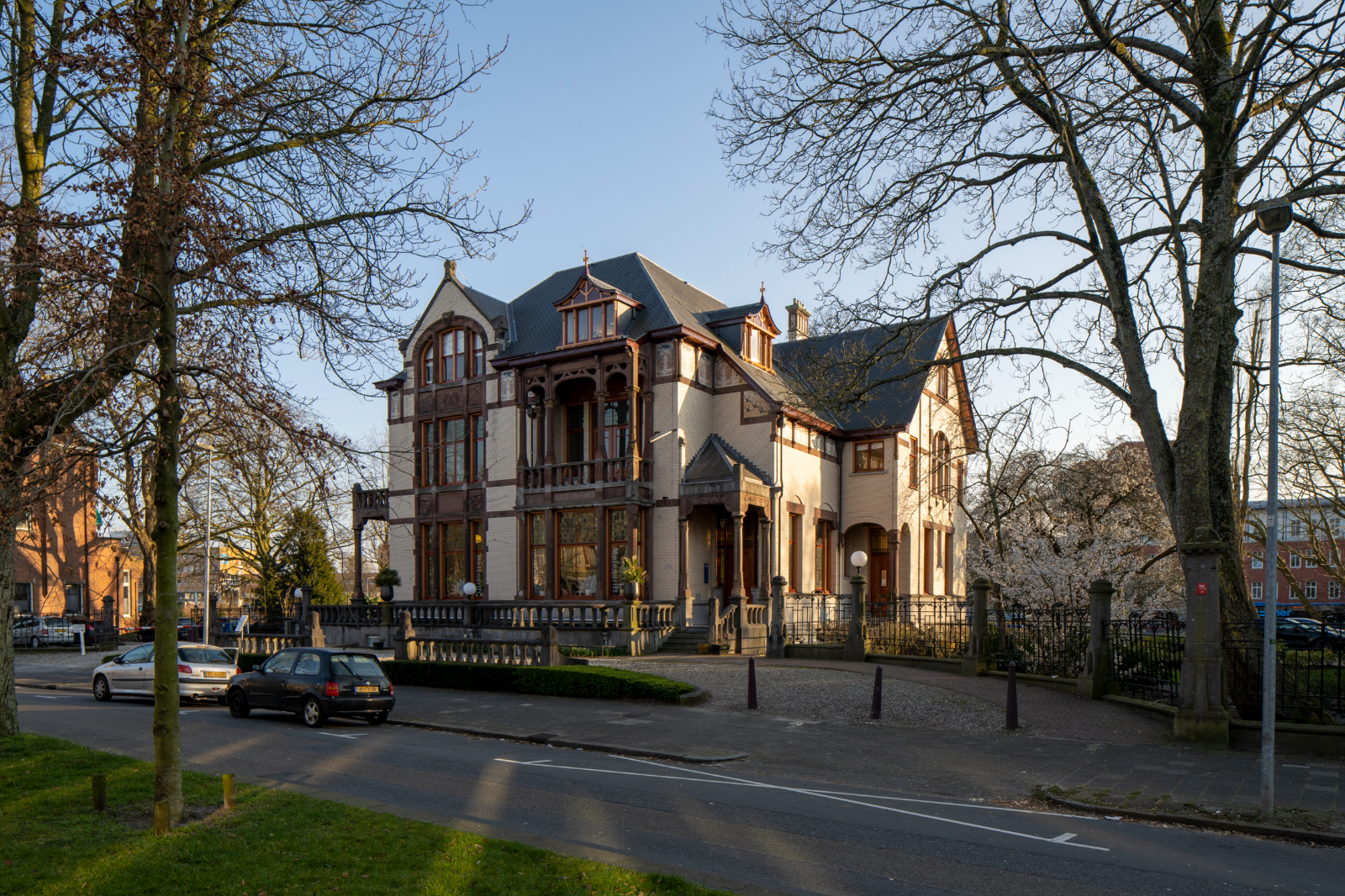 Op zoek naar een architect komt ze uit bij A.Th. van Elmpt die al verschillende jugenstilpanden heeft gebouwd. Om inspiratie op te doen mag hij op kosten van Hooites-Meursing op reis door West-Europa. Hij komt terug met talloze schetsen van Jugendstildetails en monsters van Bremer zandsteen en bijzondere marmersoorten. Van Elmpt ontwerpt vervolgens een rijk gedecoreerde stadsvilla. De buitengevels bestaan uit witte verblendsteen en krijgen karakter door de fraaie balustrades, vensteromlijstingen en spekranden van Bremer zandsteen. De zuilen onder de balkons zijn van graniet.