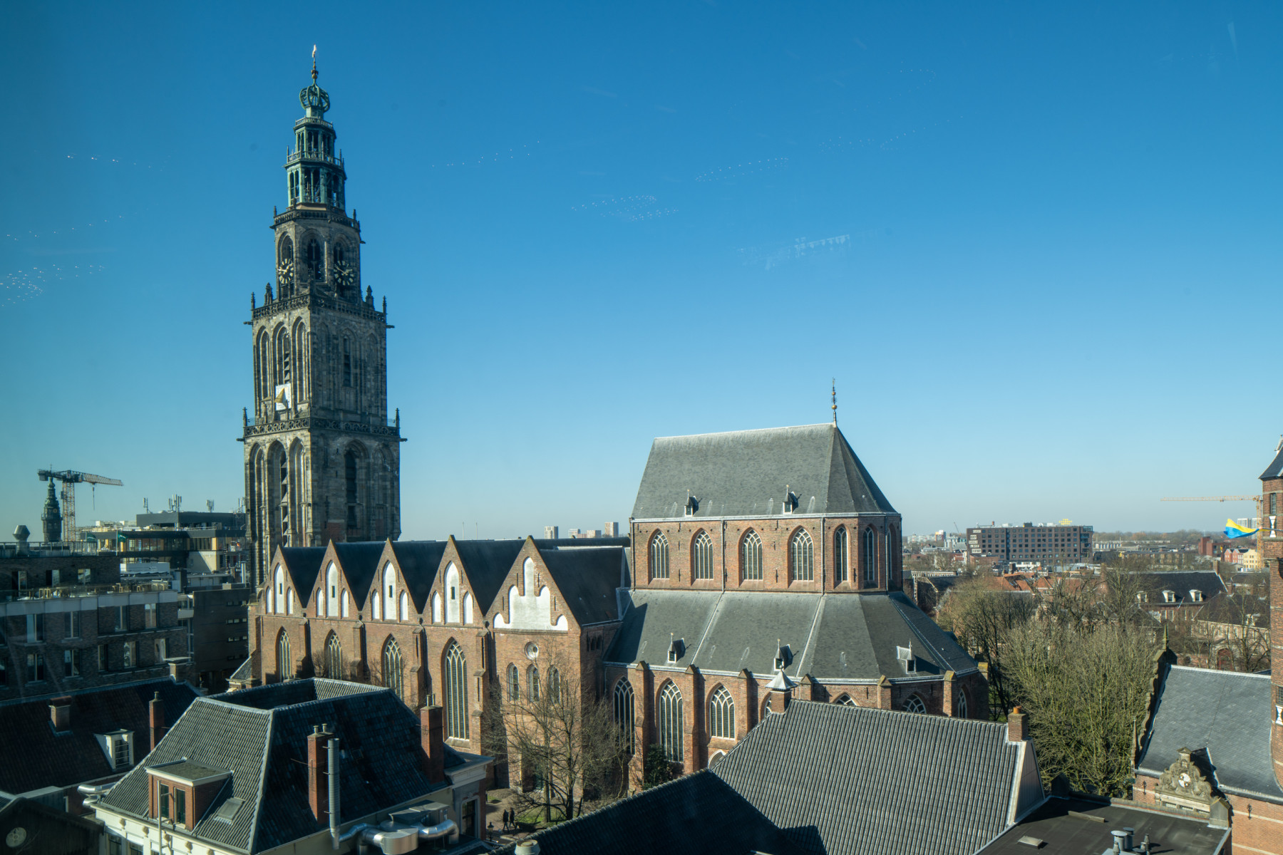 Op de brink van Groningen, tegenwoordig de Grote Markt, stond al eeuwen een houten kerk voordat deze rond het jaar 1000 werd vervangen door een groter enkelbeukig tufstenen gebouw. Omstreeks 1220 was ook deze kerk te krap geworden voor de groeiende stadsbevolking. Volgens de toen geldende stijl werd een romano-gotische kruiskerk gebouwd, gewijd aan Sint Maarten. Deze Martinikerk was een driebeukige kruiskerk met een hoog middenschip en lagere zijbeuken. Ronde absides sloten het koor en de zijbeuken af.