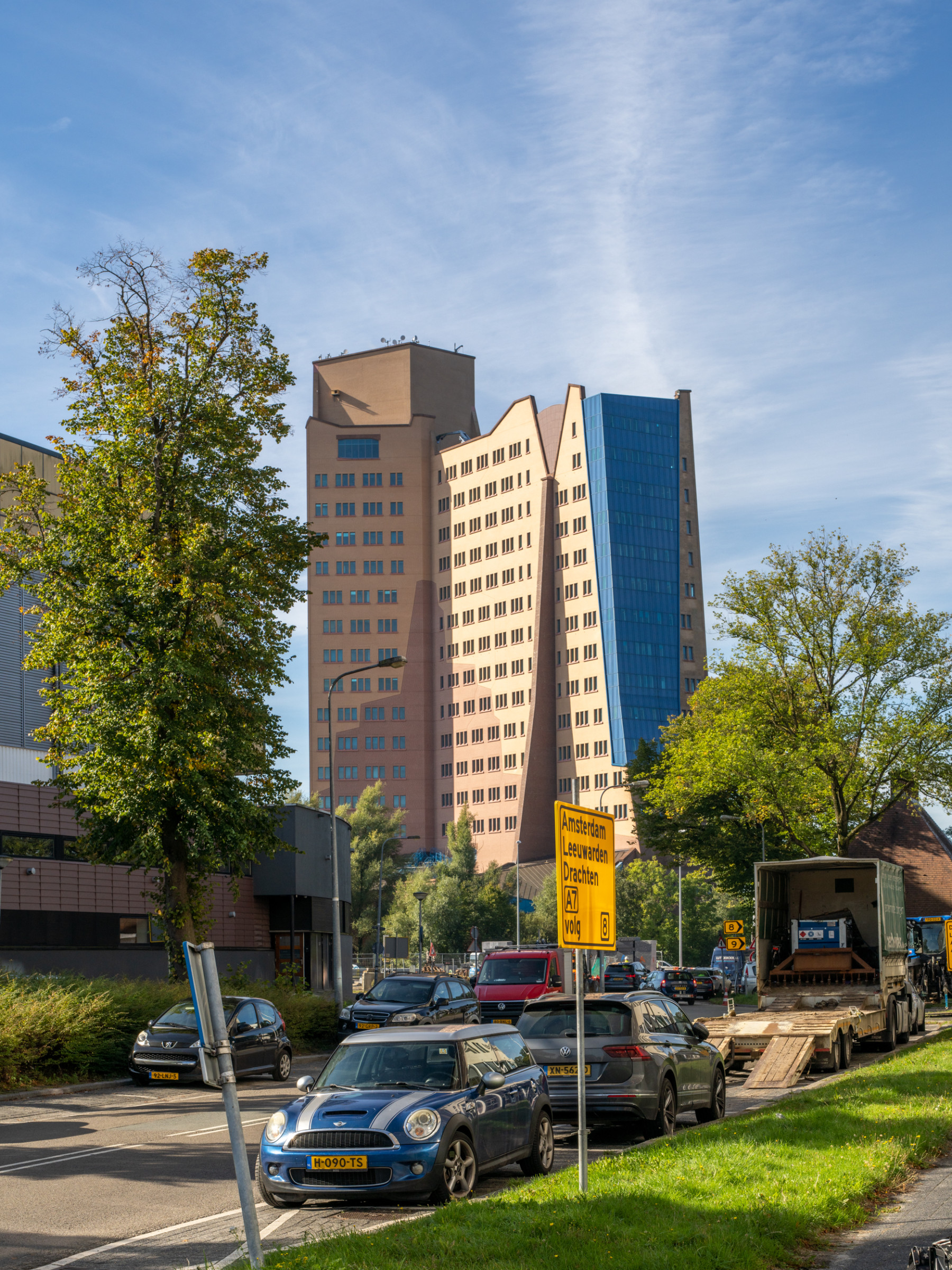 Het gebouw bestaat uit een hoogbouwdeel van 87 meter met twee onder een hoek geplaatste kantoorvleugels. Het laagbouwdeel is daar als een kraag omheen gelegd. Op de knik van de hoogbouwvleugels is aan de noordwestzijde een grote blauwe glaspartij geplaatst. Die vormt een grote vide langs het centrale wokkeltrappenhuis: een in regenboogkleuren geschilderde, verticale ruggengraat die het verbindende element vormt tussen de verdiepingen van het enorme kantoorgebouw.