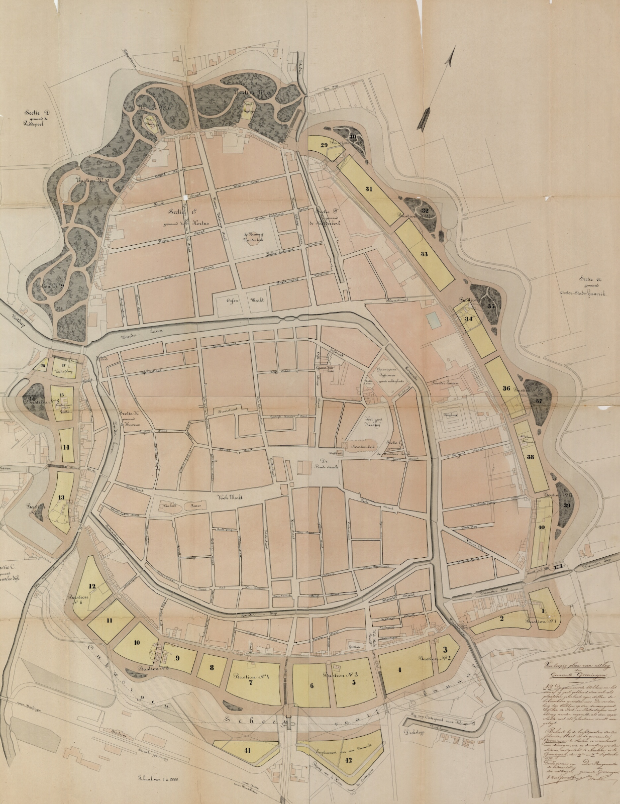 In 1875 werd afgesproken dat de Groningse vesting, die eigendom was van het rijk, geslecht zou worden volgens een gezamenlijk plan van rijk en gemeente. Na de slechting zou de gemeente de bestaande wegen en de overige infrastructuur (voor zover die behouden zouden blijven) kosteloos overnemen. De bouwgronden zouden door het rijk verkocht worden. B & W vroegen vervolgens de Minister van Financiën om met een plan te komen. Dit plan werd gemaakt door de Ingenieur der Ontmanteling, F.W. van Gendt.