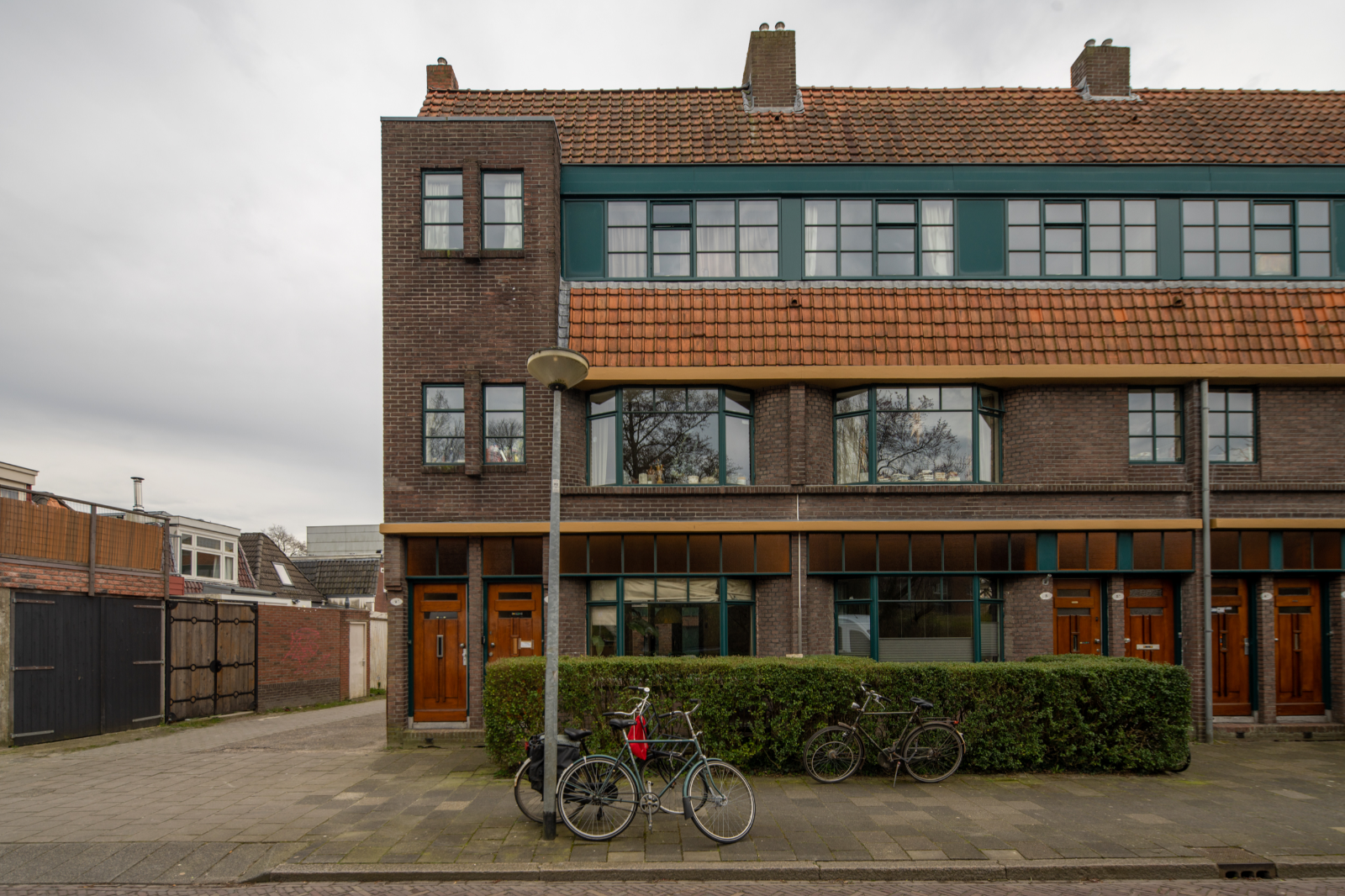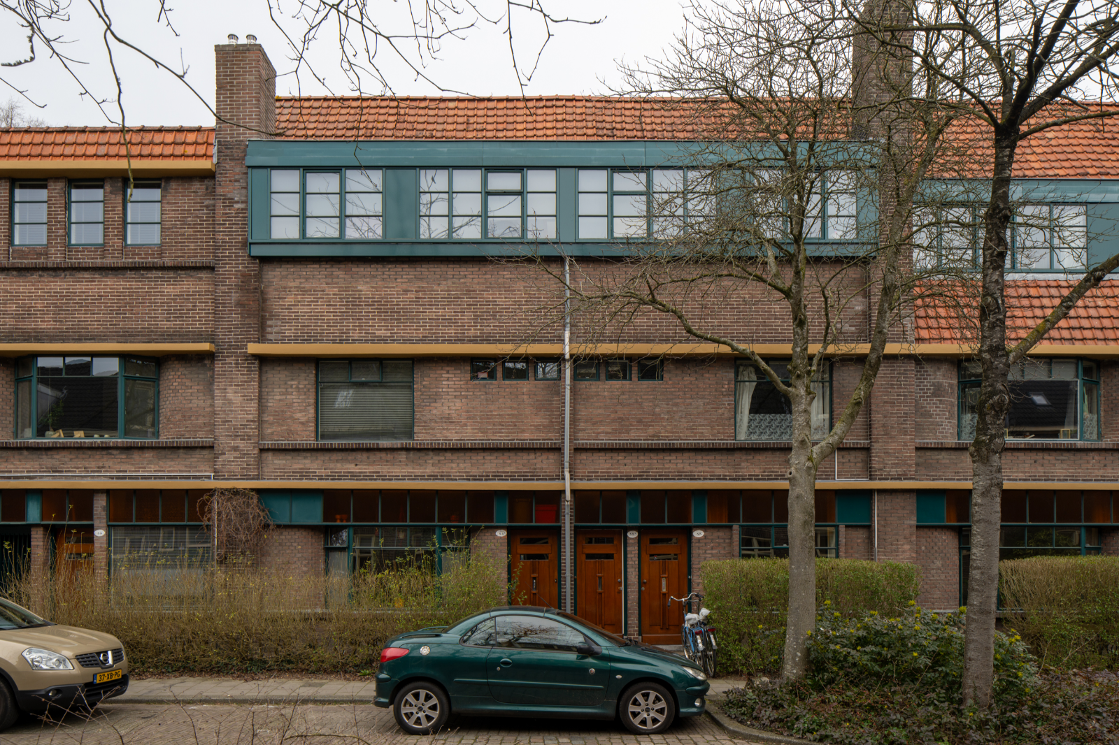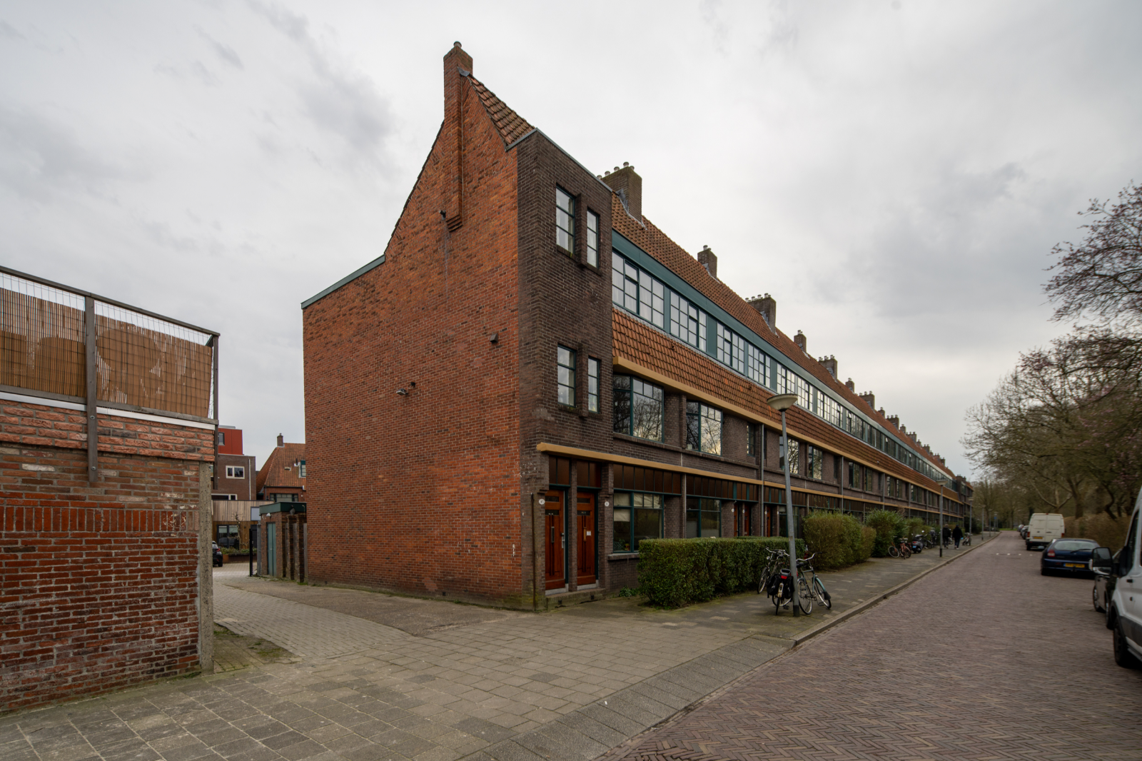 Net als bij het Bernouilliplein vermengt Boer elementen uit de Amsterdamse School met die van de Nieuwe Zakelijkheid. Uniek voor die tijd is de schaal waarop Boer volledig stalen kozijnen toepast. De kleurstelling wordt door de architect zorgvuldig uitgedacht, van okerbruin op het beton, donkergroen op het staal en oranje glas in de bovenlichten, tot het voegwerk, de blank gelakte deuren en de oranje dakpannen. In 1995 is het complex succesvol gerenoveerd dankzij een nauwe samenwerking tussen de bewoners, Stichting Stadsherstel, SKETS Architectuurstudio, de aannemer en de gemeente. Nationaal wordt het een voorbeeldproject, al weigert een klein aantal eigenaren mee te doen. Op die plekken zijn de kunststof kozijnen blijven zitten.