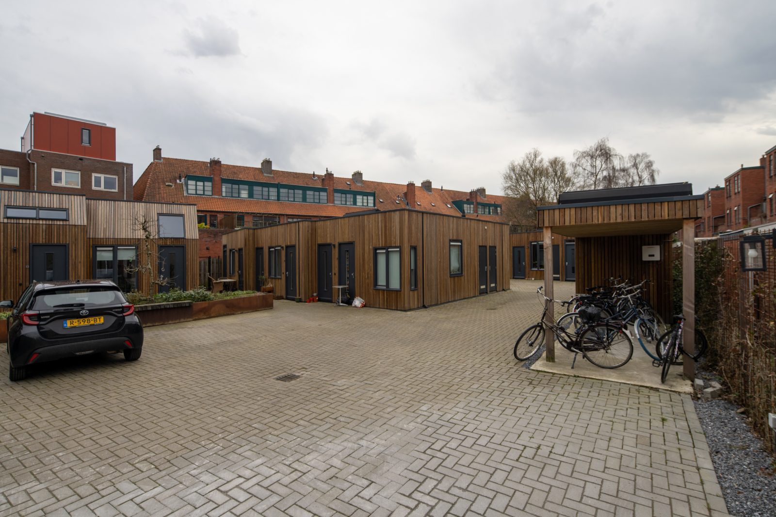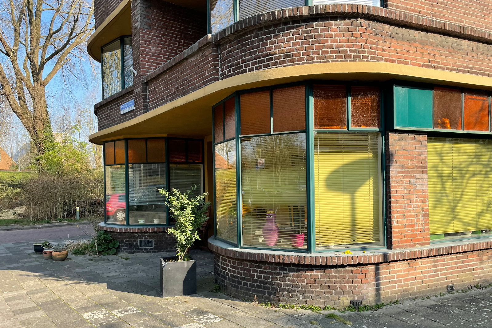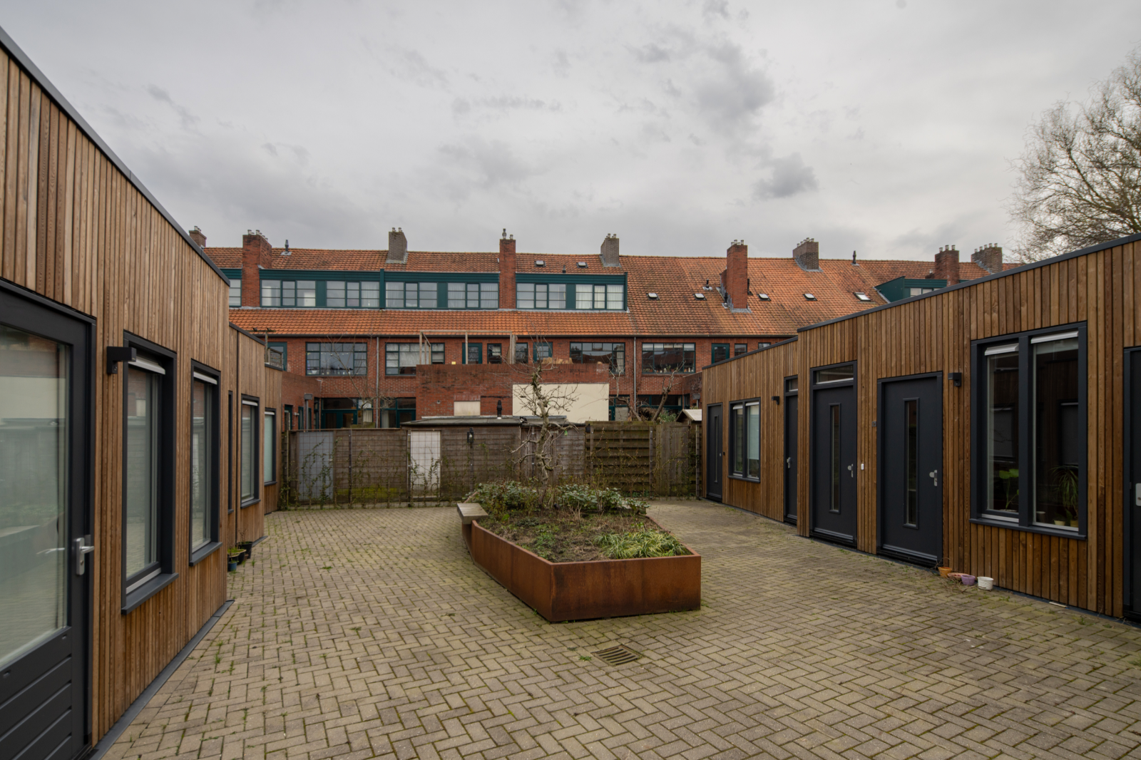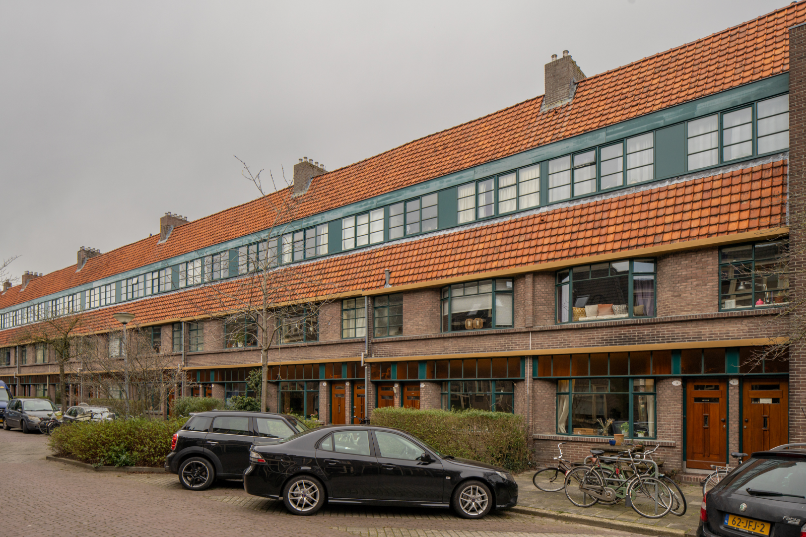 Net als bij het Bernouilliplein vermengt Boer elementen uit de Amsterdamse School met die van de Nieuwe Zakelijkheid. Uniek voor die tijd is de schaal waarop Boer volledig stalen kozijnen toepast. De kleurstelling wordt door de architect zorgvuldig uitgedacht, van okerbruin op het beton, donkergroen op het staal en oranje glas in de bovenlichten, tot het voegwerk, de blank gelakte deuren en de oranje dakpannen. In 1995 is het complex succesvol gerenoveerd dankzij een nauwe samenwerking tussen de bewoners, Stichting Stadsherstel, SKETS Architectuurstudio, de aannemer en de gemeente. Nationaal wordt het een voorbeeldproject, al weigert een klein aantal eigenaren mee te doen. Op die plekken zijn de kunststof kozijnen blijven zitten.