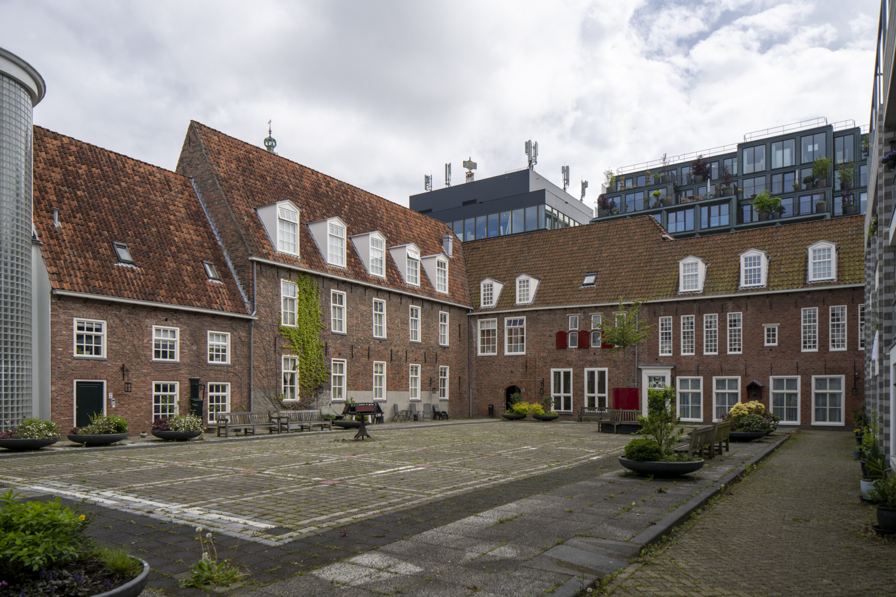 Het terrein liep door tot aan de stadsmuur, terwijl de oost- en westgrens te vinden waren op de plaats van de huidige straatjes met de toepasselijke naam ’t Klooster. Tegen te veel contact met de buitenwereld werd gewaakt en voor de meeste nonnen was er niet veel meer dan een venster in het aan de straat gelegen ‘Spreekhuis’.