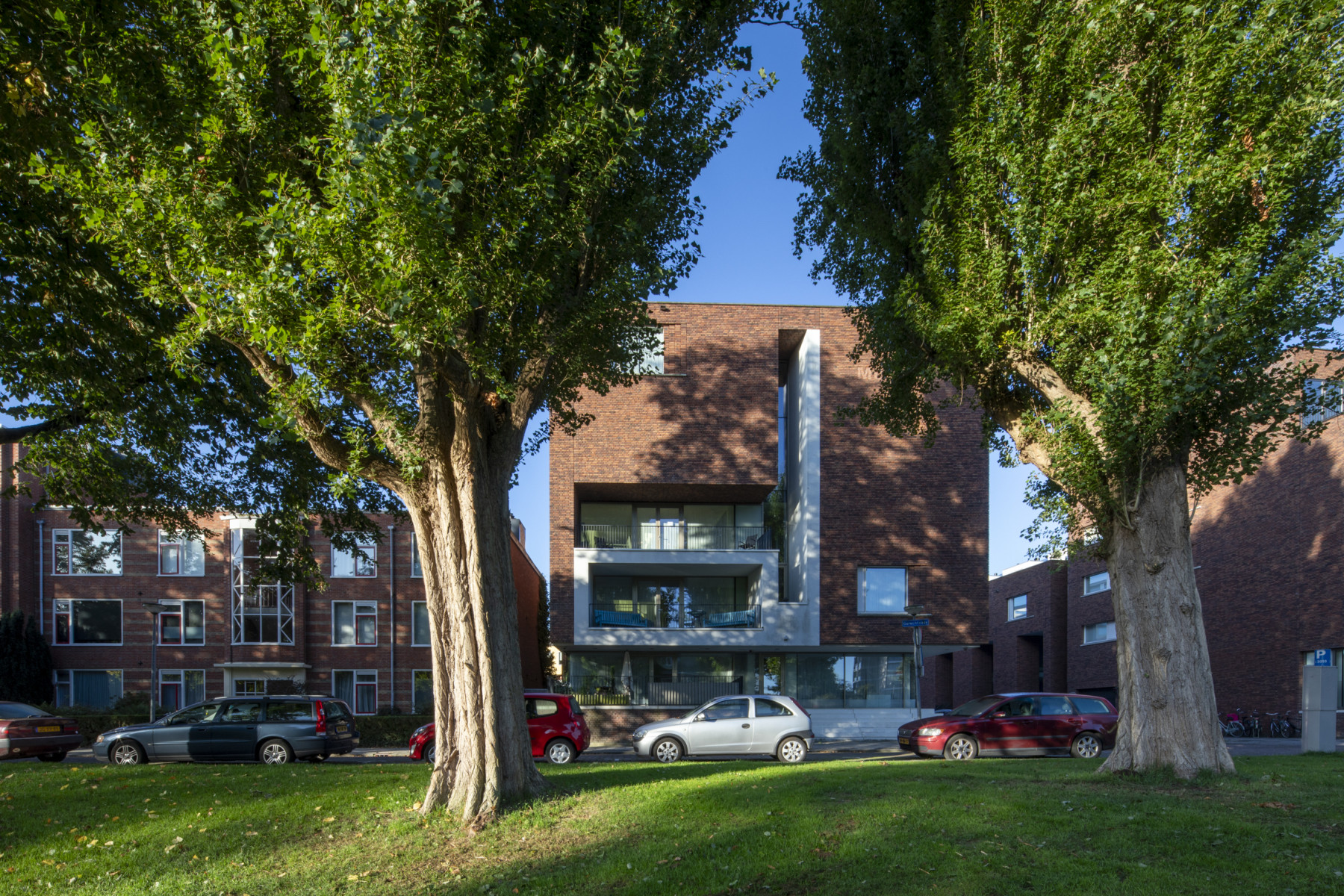 De parkeergarage ligt half onder de grond en zorgt ervoor dat het huis op een sokkel staat met een mooi uitzicht op de straat, de groene Gorechtkade en de omliggende huizen.
