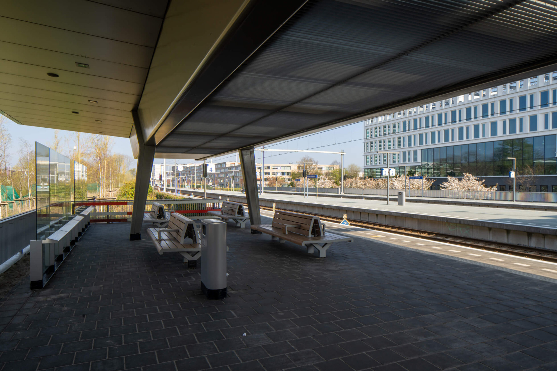 De twee titanium vleugels rusten alleen op de lift en een portaal waardoor ze een zeer grote vrije overspanning van 36 meter, met aan weerzijden overkragingen van bijna 11 meter en een spanwijdte van 13 meter, hebben. De functionaliteit van het perron is zo optimaal mogelijk en geeft het energiezuinige station een mooi aanzicht. In de kappen zijn onder meer cameras, verlichting en leidingen geïntegreerd. Er hangt bijna niets op of aan het dak. In het middendeel laat koudgebogen glas (een gepatenteerde uitvinding van Movares) daglicht toe. De twee daken overkappen de volledige breedte van het midden- en zijperron. Hierdoor kunnen reizigers droog in- en uitstappen.