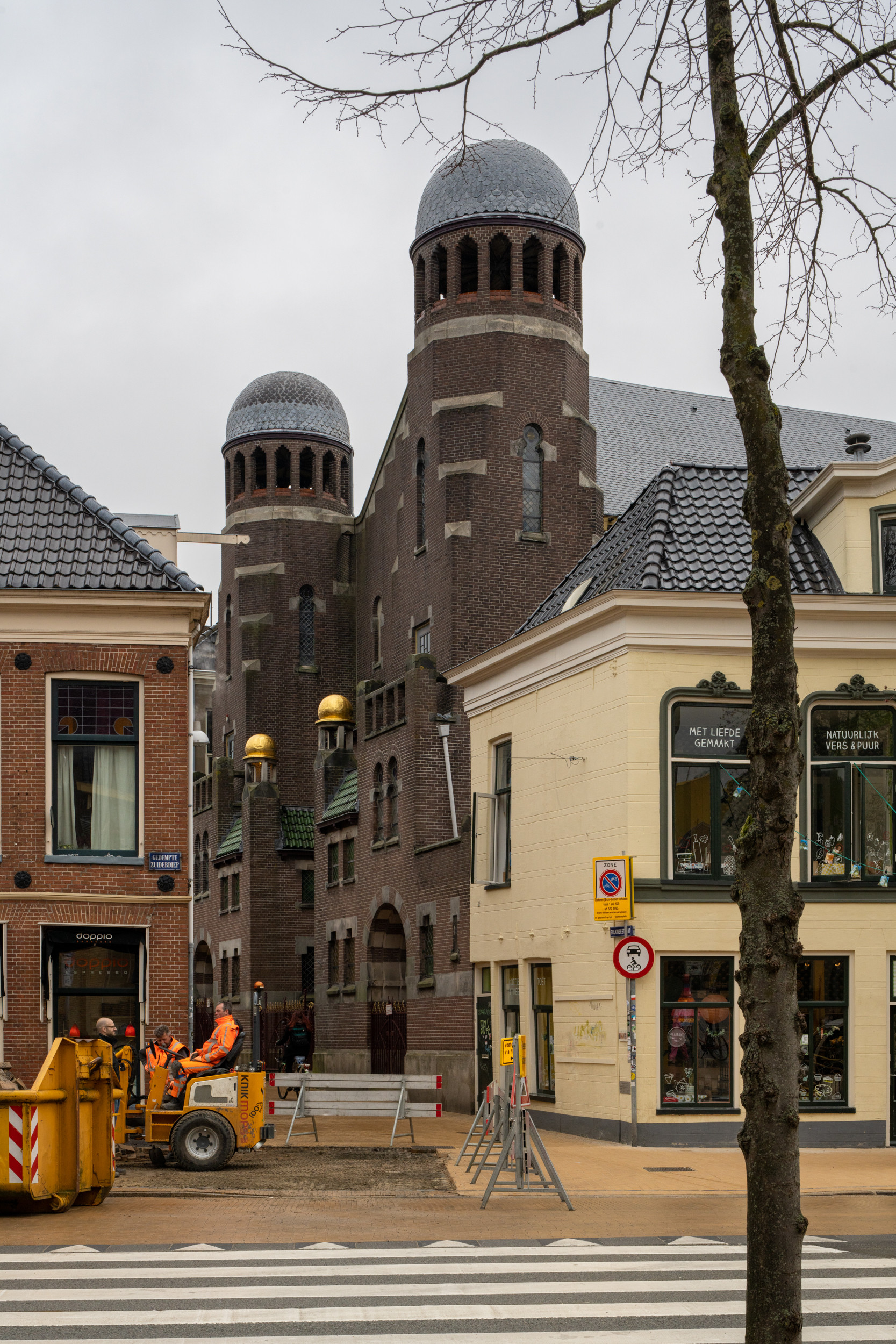 Tot 1905 zou de Joodse Gemeente er haar godsdienstoefeningen houden. Doordat de Joodse gemeenschap in de 19e eeuw ongeveer vervijfvoudigd was, werd besloten architect Tjeerd Kuipers een nieuwe synagoge te laten tekenen. Kuipers had al heel wat kerken ontworpen, waaronder de Zuiderkerk aan de Stationsstraat, maar synagoges waren hem vreemd. Hij moest voor z’n ontwerp terugvallen op zijn ruime kennis van de Europese bouwkunst.