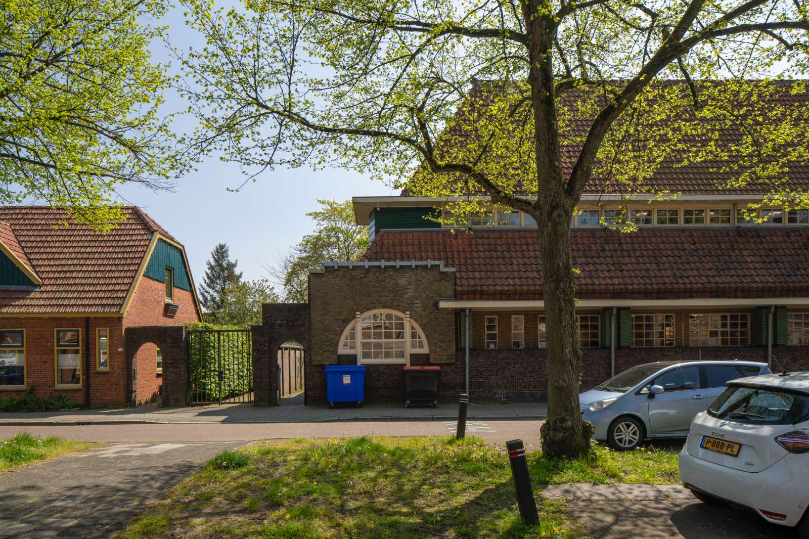 De wijk met de hoogste ‘mooie scholendichtheid’ van Nederland is de Groninger Oosterparkwijk. Vijf zijn er ontworpen door Siebe Jan Bouma, de wonderboyvan de Groninger scholenbouw. Al zijn het er eigenlijk zes, want op de hoek Heesterpoort—Zaagmuldersweg staan twee scholen in een gebouw. Dat scheelt in de bouw- en exploitatiekosten. Maar nog belangrijker: twee scholen betekent meer massa. Daardoor kan Bouma een monumentaal element in de wijk maken. Die aandachtige stedenbouwkundige inpassing blijkt ook uit de zorgvuldigheid waarmee Bouma de overgang tussen de school en de openbare ruimte ontwerpt.