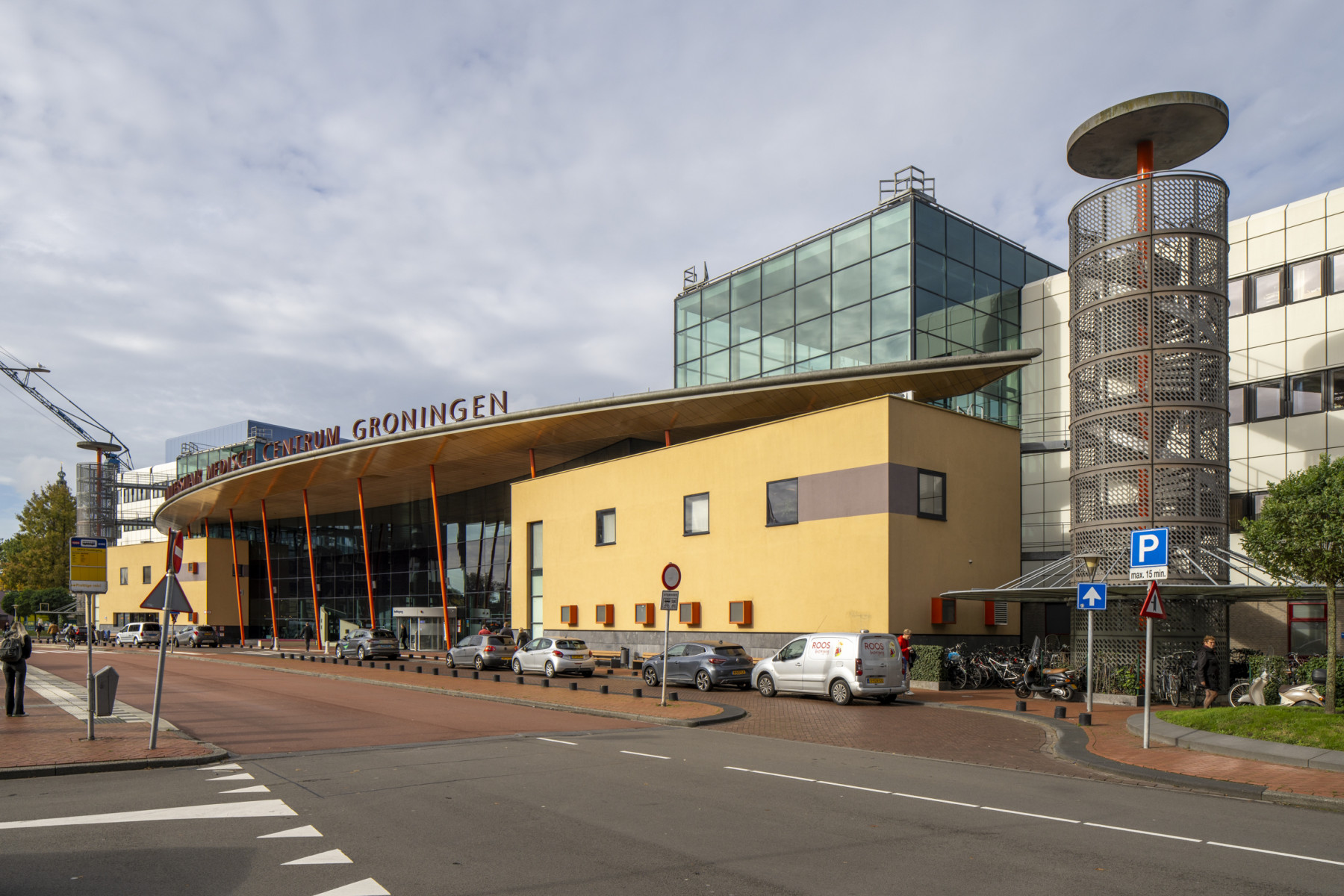 Samen met Team4 Architecten werd het plan uitgewerkt, maar toen de bouw in volle gang was, werd het radicaal omgegooid. Decentralisatie maakte plaats voor centralisatie; de 'losse' beddenhuizen werden geïntegreerd door een centrale overkapping. De opvolger van Kruisheer, Wytze Patijn, voorzag het nieuwe ontwerp van een 'smoel'; een baaivormige glazen voorgevel die grandeur uitstraalt en zorgt voor een geleidelijke overgang van buiten naar binnen. Deze geeft het UMCG een uitstraling die niet direct doet denken aan een ziekenhuis. De balies, terrasjes en supermarkt zou je ook op een doorsnee vliegveld kunnen aantreffen.