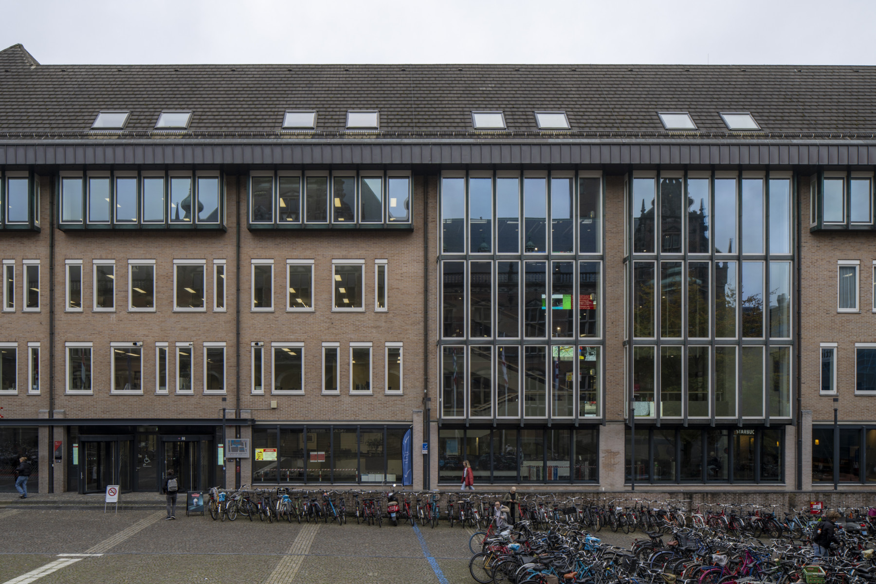 Een van de voorwaarden van de opdrachtgever was dat het gebouw het bestaande Academiegebouw niet mocht overschreeuwen. Dit heeft geleid tot een vrij platte, gedrukte gevel, met een groot glazen gedeelte in het midden. Dit enorme venster zorgt voor lichtval in het centrale trappenhuis, maar fungeert ook als spiegelwand tegenover het Academiegebouw. Rondom het centrale trappenhuis zijn de verschillende bibliotheekzalen gegroepeerd.