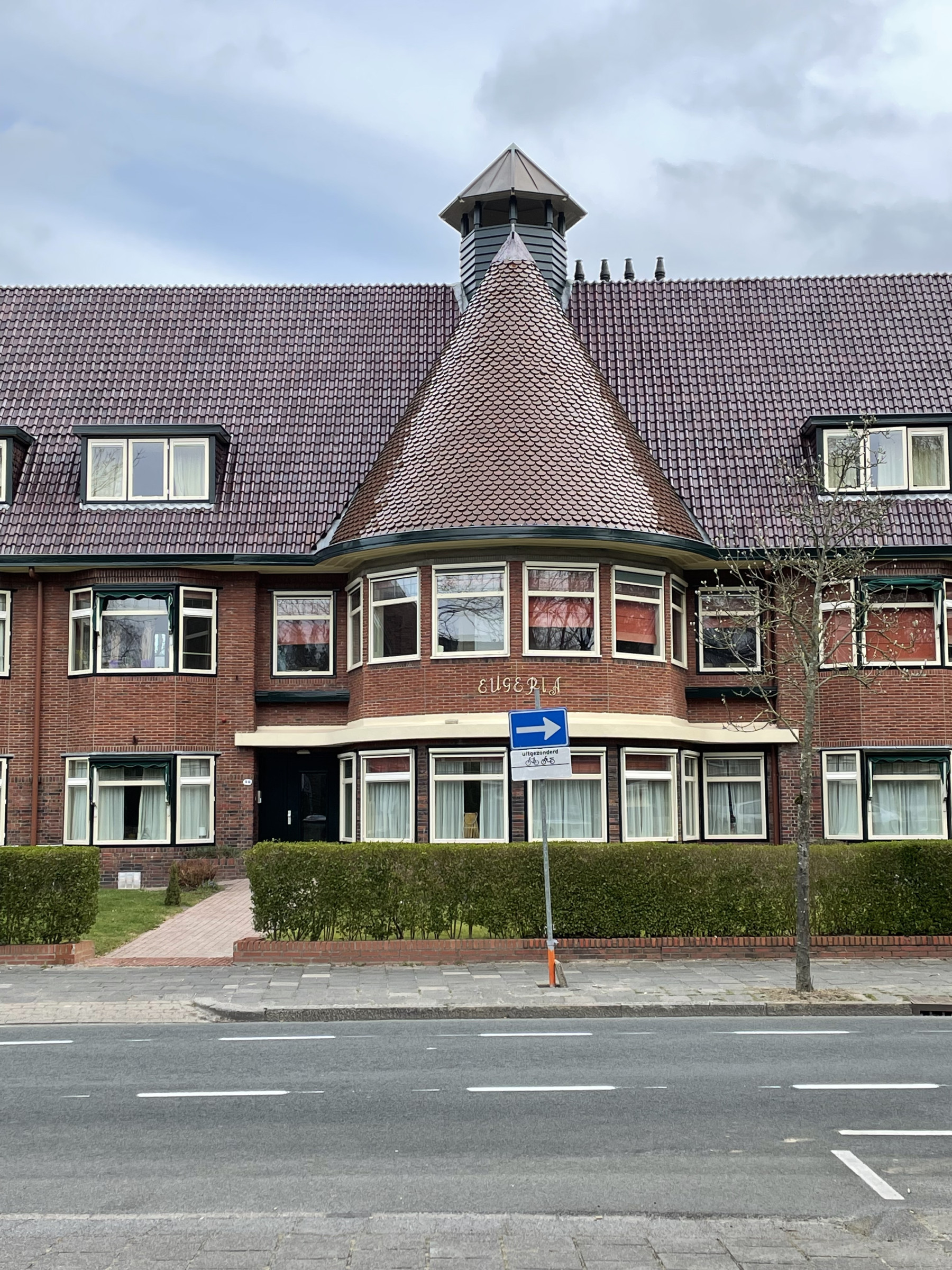 Na veel onderhandelen kwamen beide partijen overeen dat de vereniging zou meebetalen aan de aanleg van een straat. De vereniging deed vervolgens een enorme aanbetaling van bijna 20.000 gulden. Pas na deze overeenkomst werd er begonnen met de bouw van het verenigingsgebouw, naar een ontwerp van de architect M.G. Eelkema. Opvallend is het middendeel met het ronde puntdak, waar zich ten tijde van het tehuis de conversatiezaal bevond, met daarboven de directiekamer. Een prachtig detail is het kleine koepeltje op het zadeldak, dat als een soort uitkijktorentje over Huize Eugeria ‘waakt’.