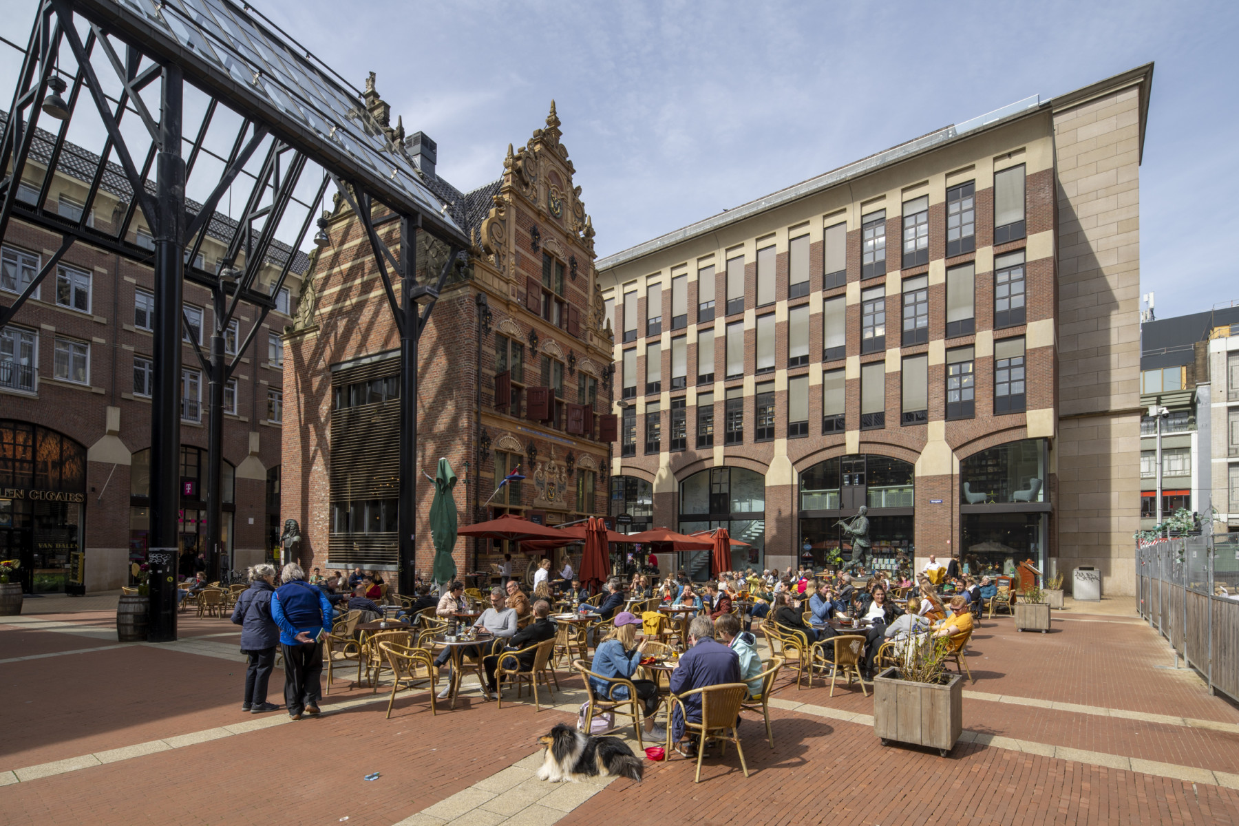 Een glazen luifel verbindt het oude Goudkantoor met de nieuwbouw en biedt tegelijkertijd beschutting voor de terrassen van het grand café en het restaurant in het Goudkantoor. De overdekte ruimte kan ook worden gebruikt als podium voor muziek. Onder de luifel hangen sculpturen van de Ierse beeldhouwster Janet Mullarney, getiteld Farsi Largo/Making Space.