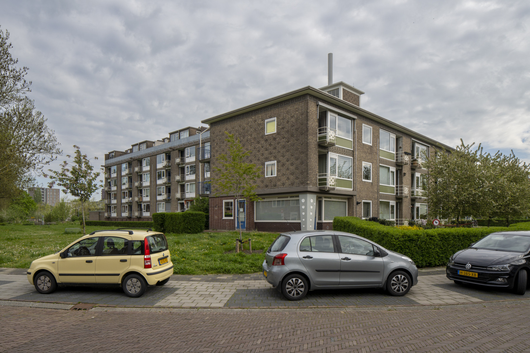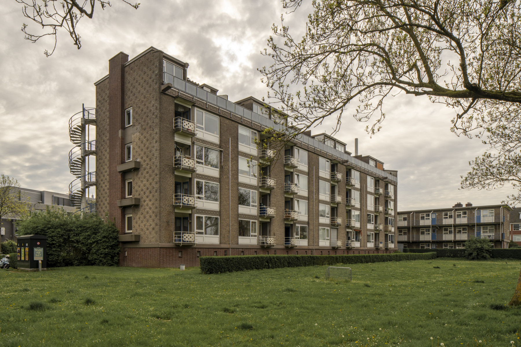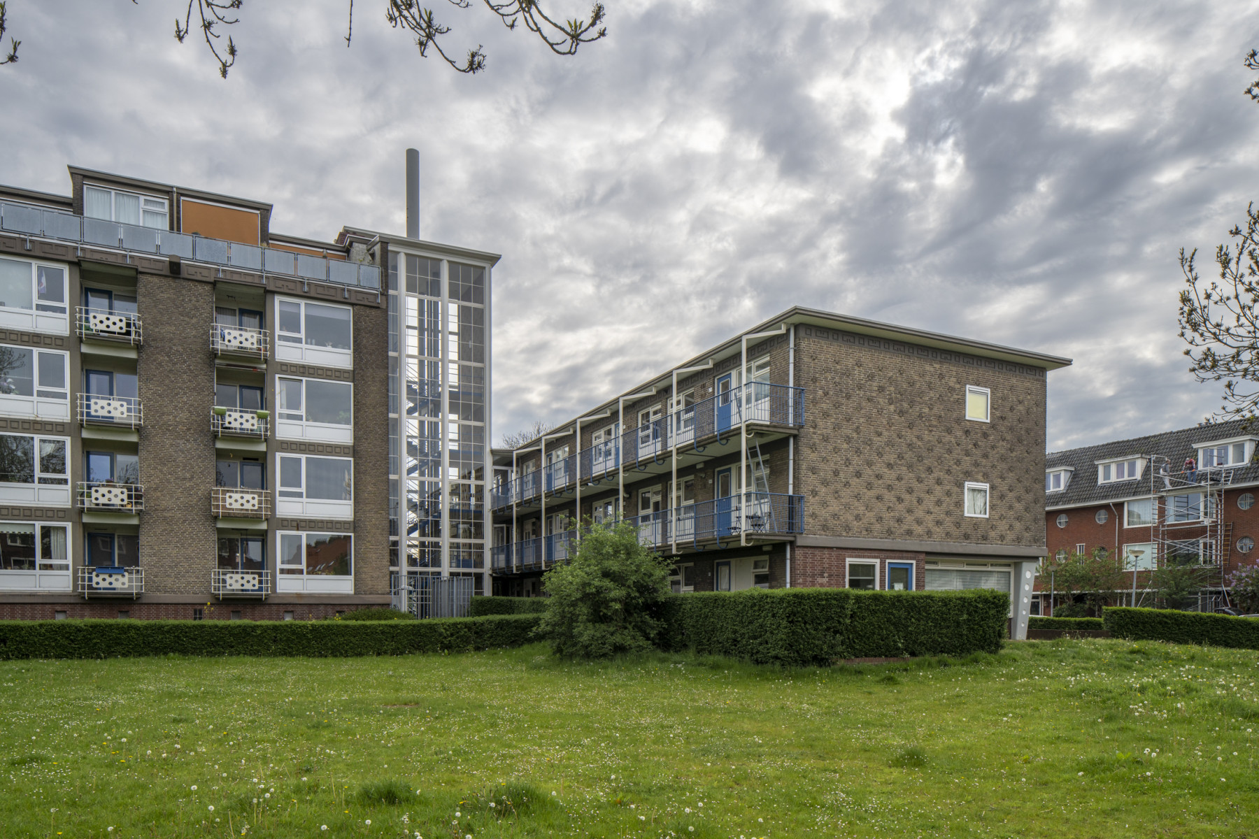 De hoogbouw bestaat uit vijf woonlagen op een souterrain met bergingen. De bovenste laag is met kleinere woningen bebouwd, die allemaal beschikken over een groot dakterras. Er liggen zeven flats aan elke galerij. De flats zijn gespiegeld. De hoogbouw is gerealiseerd als betonskelet.