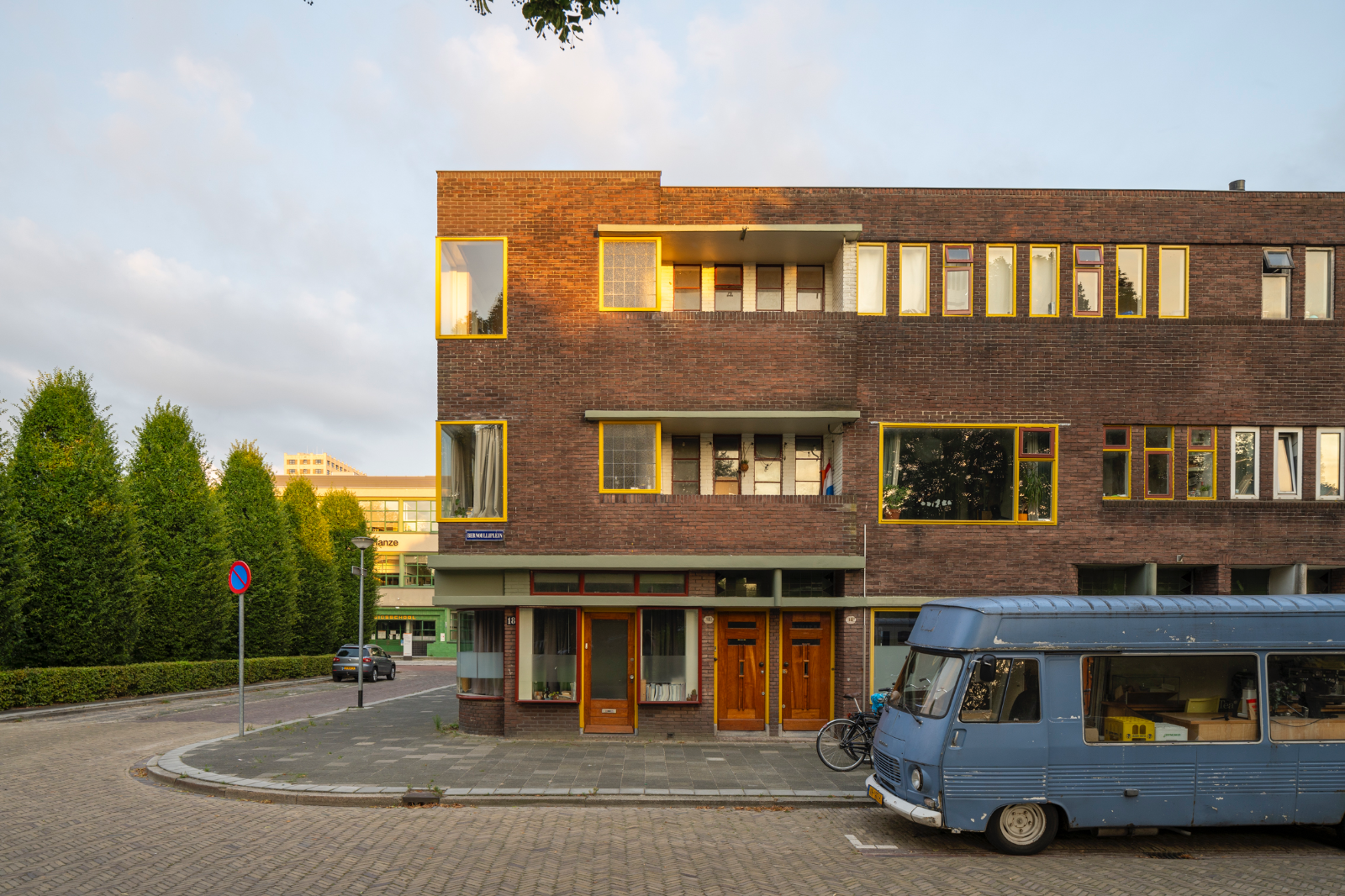 Boer besteedt veel aandacht aan het kleurschema. De kozijnen, de betonnen sierranden, de kapoverstekken en zelfs de voegen in het metselwerk worden van kleur voorzien. Ook elders in de Korrewegwijk staan prachtige ontwerpen van Jo Boer, zoals het hoekpand Korreweg – Balistraat en een wooncomplex op de hoek van de Korreweg en de Oppenheimstraat.