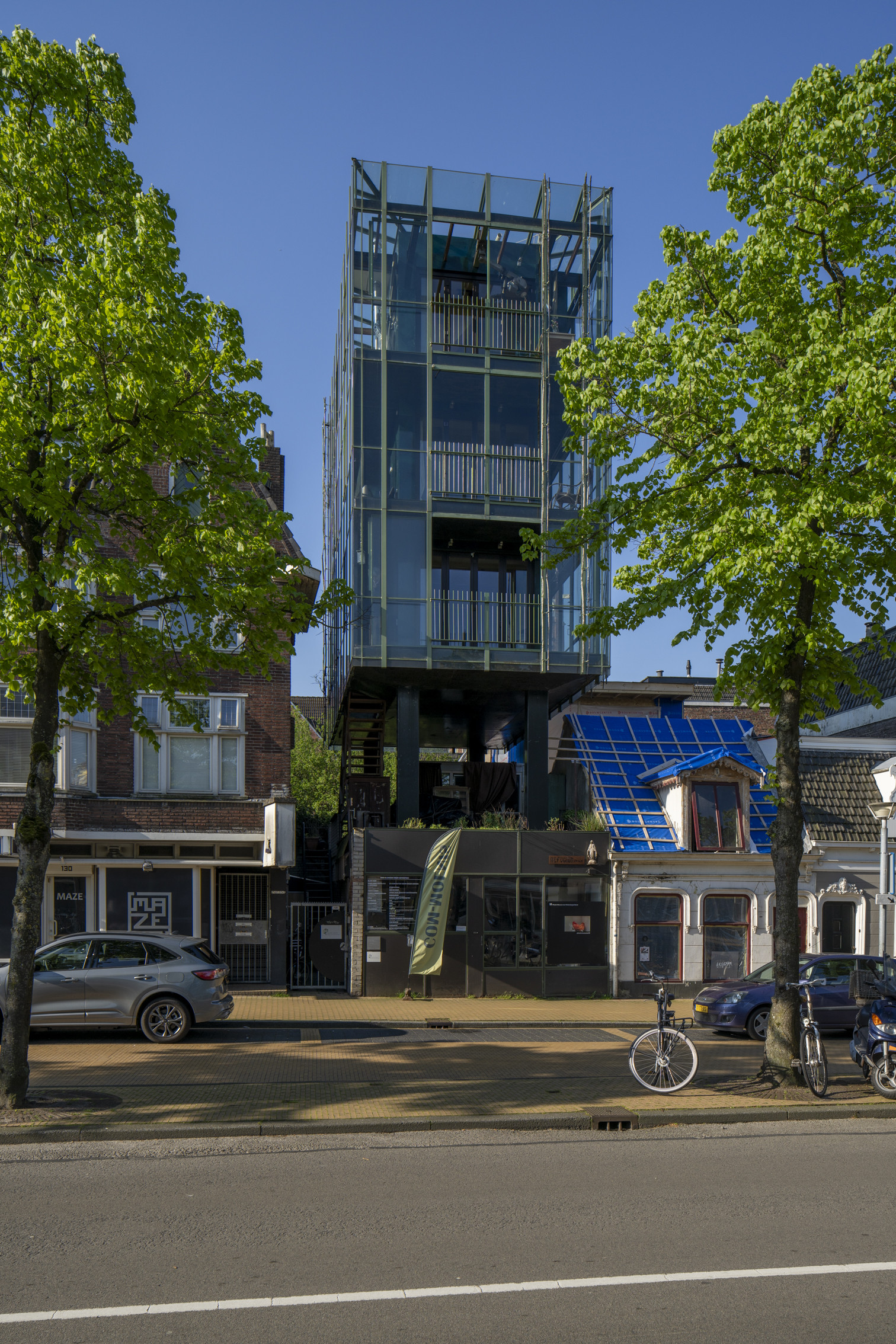 Het woonhuis is opgebouwd volgens het doos-in-een-doos principe. De buitenschil van het gebouw is geheel in glas uit- gevoerd. Het gebied tussen binnen- en buitenschil functioneert als serre, omloop, balkon en hal. Een zone die warmte accumuleert waardoor minder energie gebruikt wordt omdat alleen de binnen- doos verwarmd hoeft te worden. De serre is alleen in de herfst, lente en zomer te gebruiken. In de winter wordt kleiner gewoond.